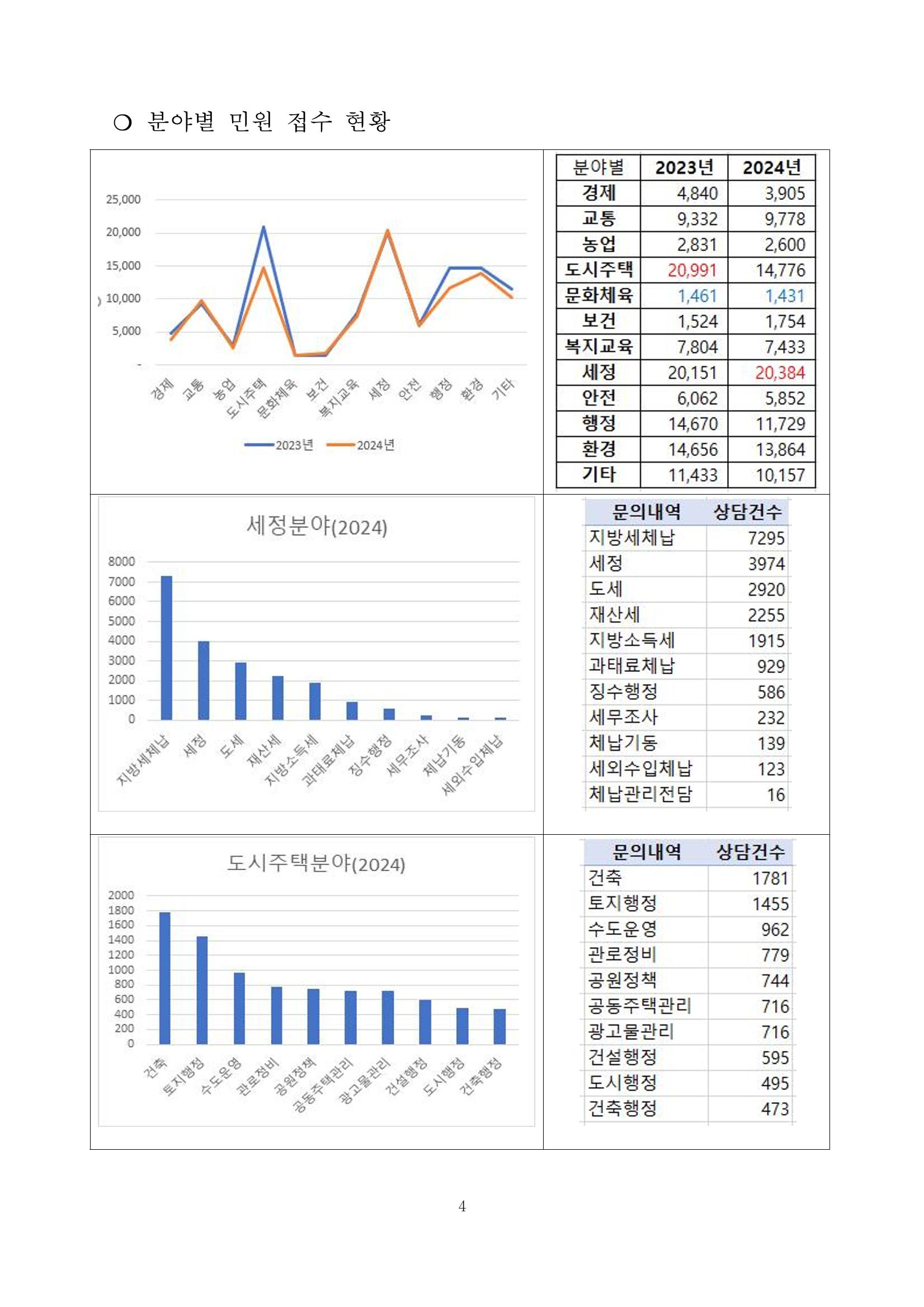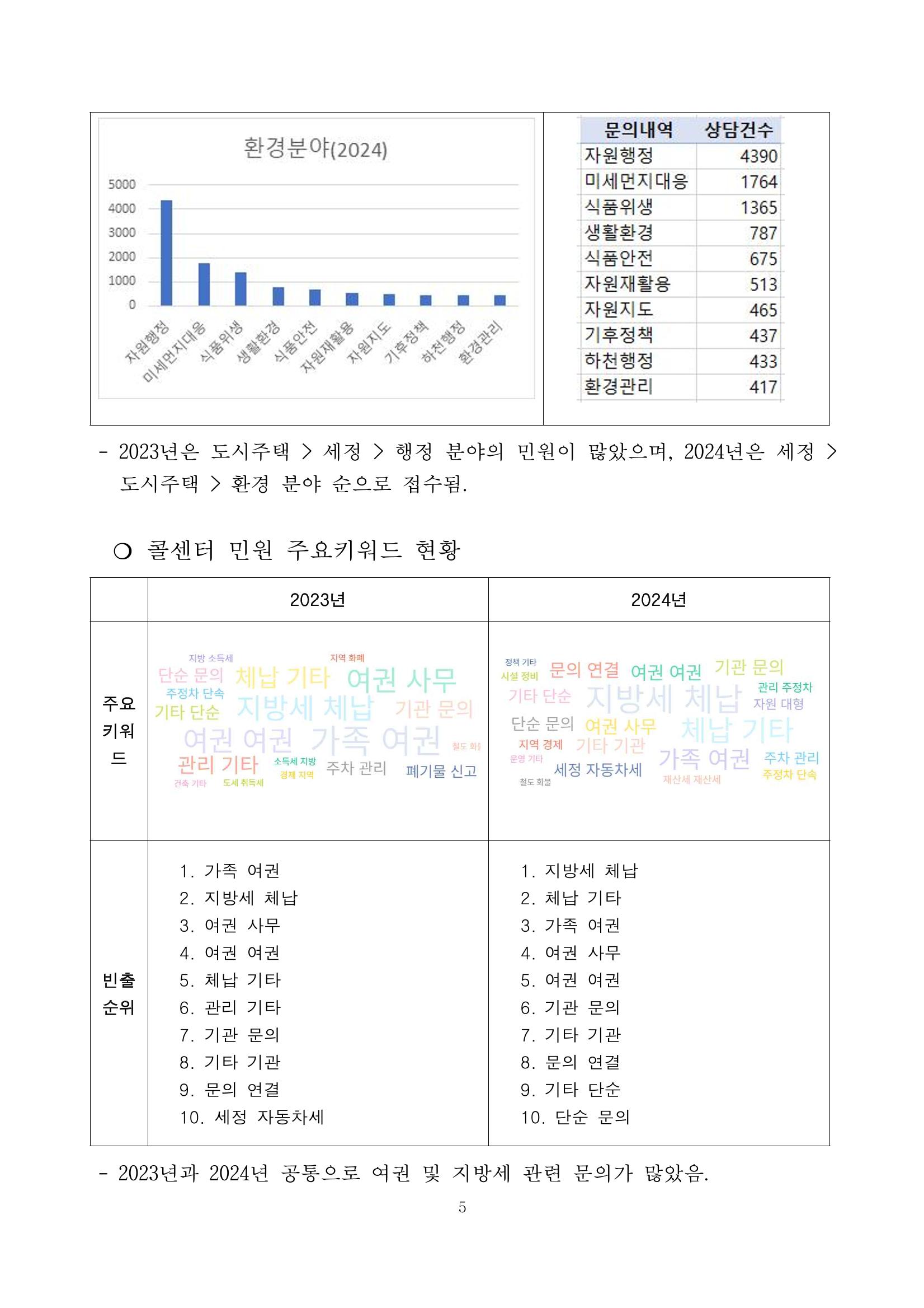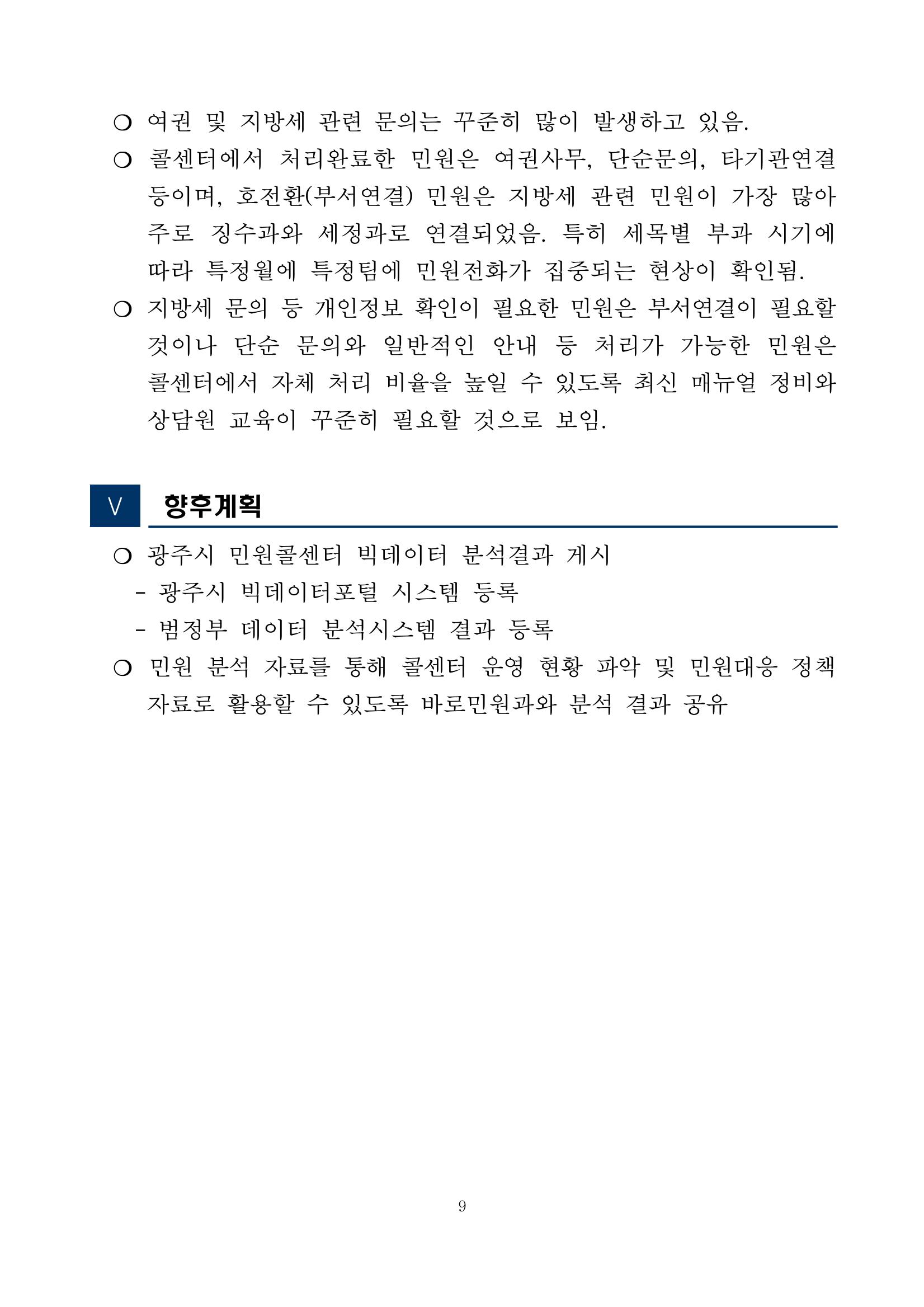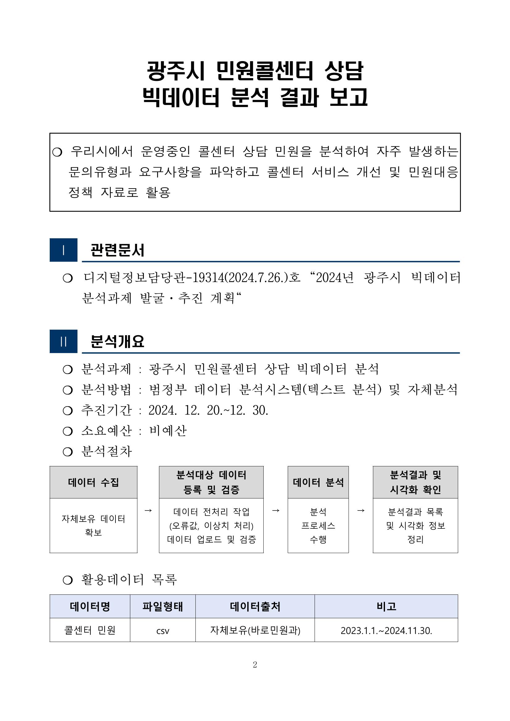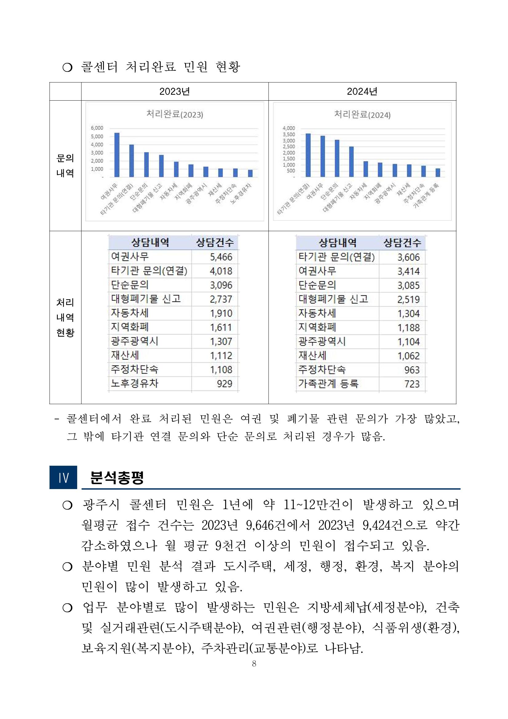 광주시 민원콜센터 상담 빅데이터 분석 결과